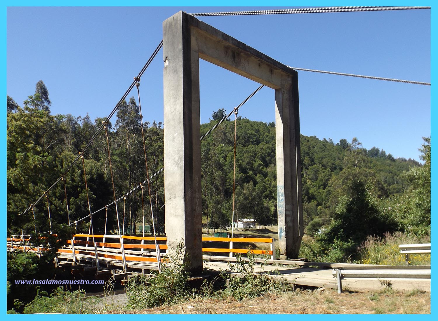 Entre los atractivos paisajísticos de Los Álamos está visitar el río Cupaño, donde se emplaza un llamativo puente colgante de 86 metros y se ubica a unos 4 kilómetros desde el centro de la ciudad Alameña.